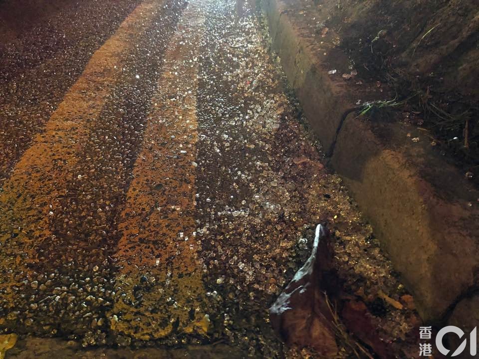 現場遺下大量玻璃碎片。(梁偉權攝)