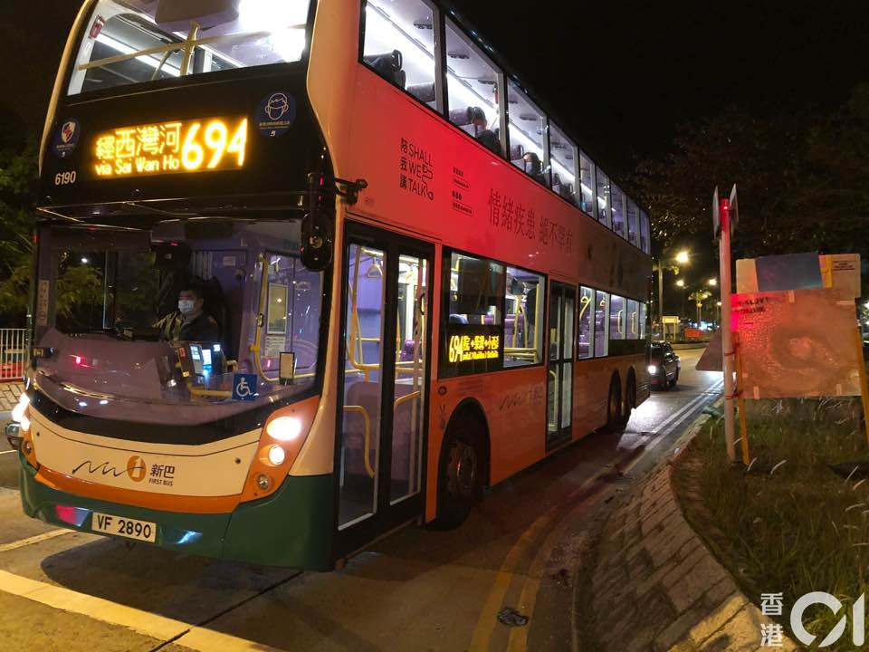 涉事巴士線為694號。(梁偉權攝)