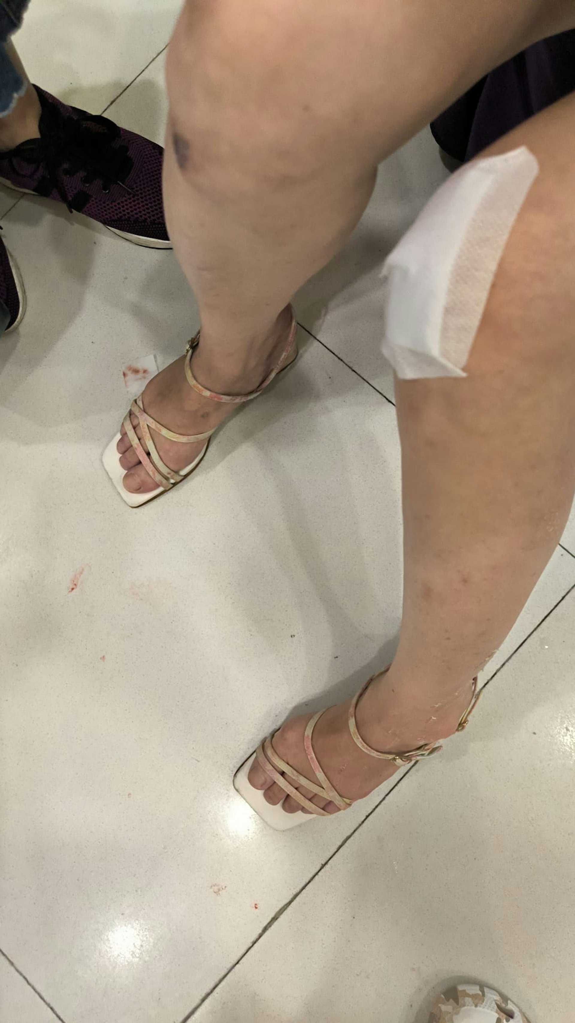 其中一名傷者膝部受創,鞋面亦可見血漬。