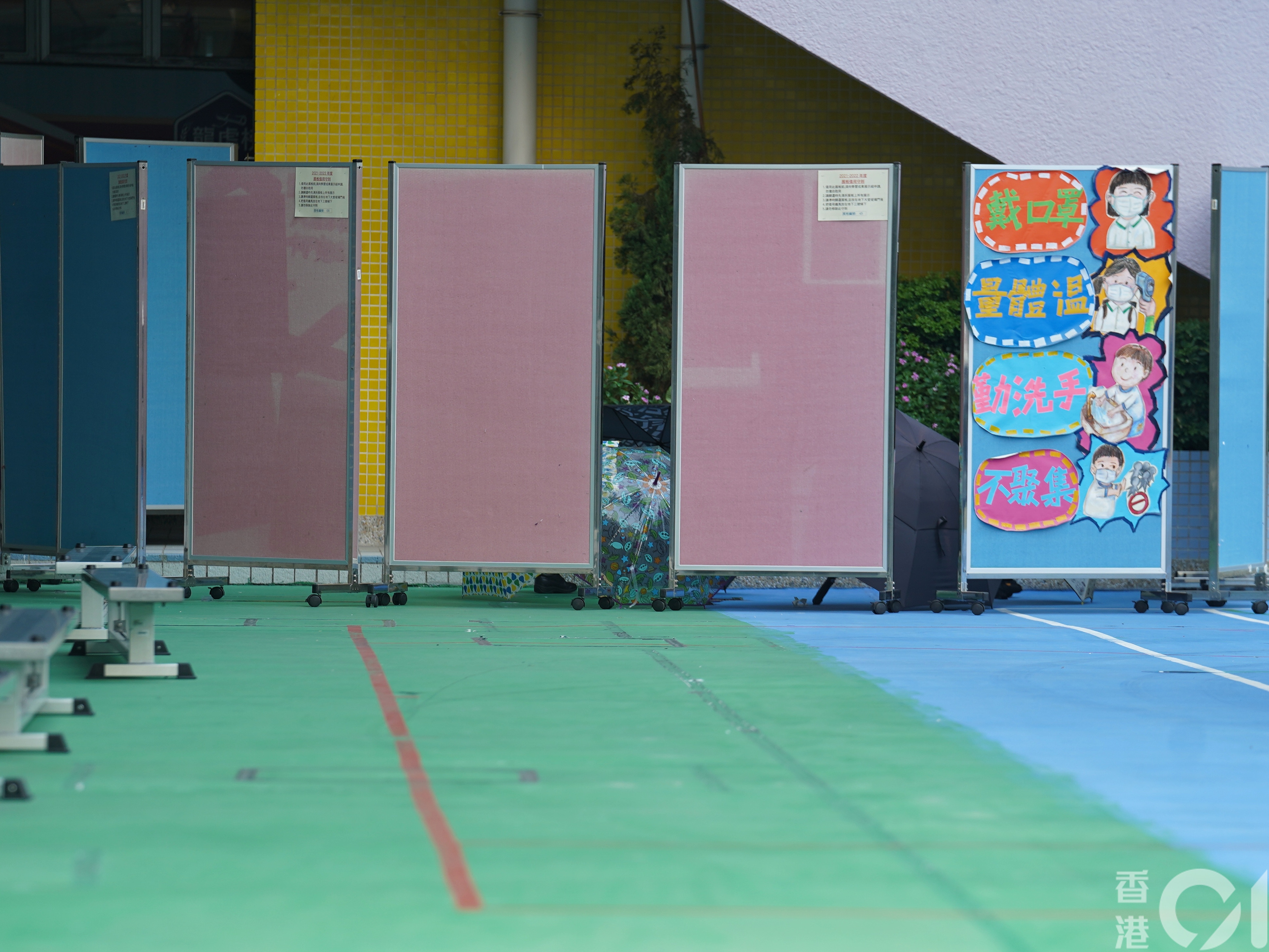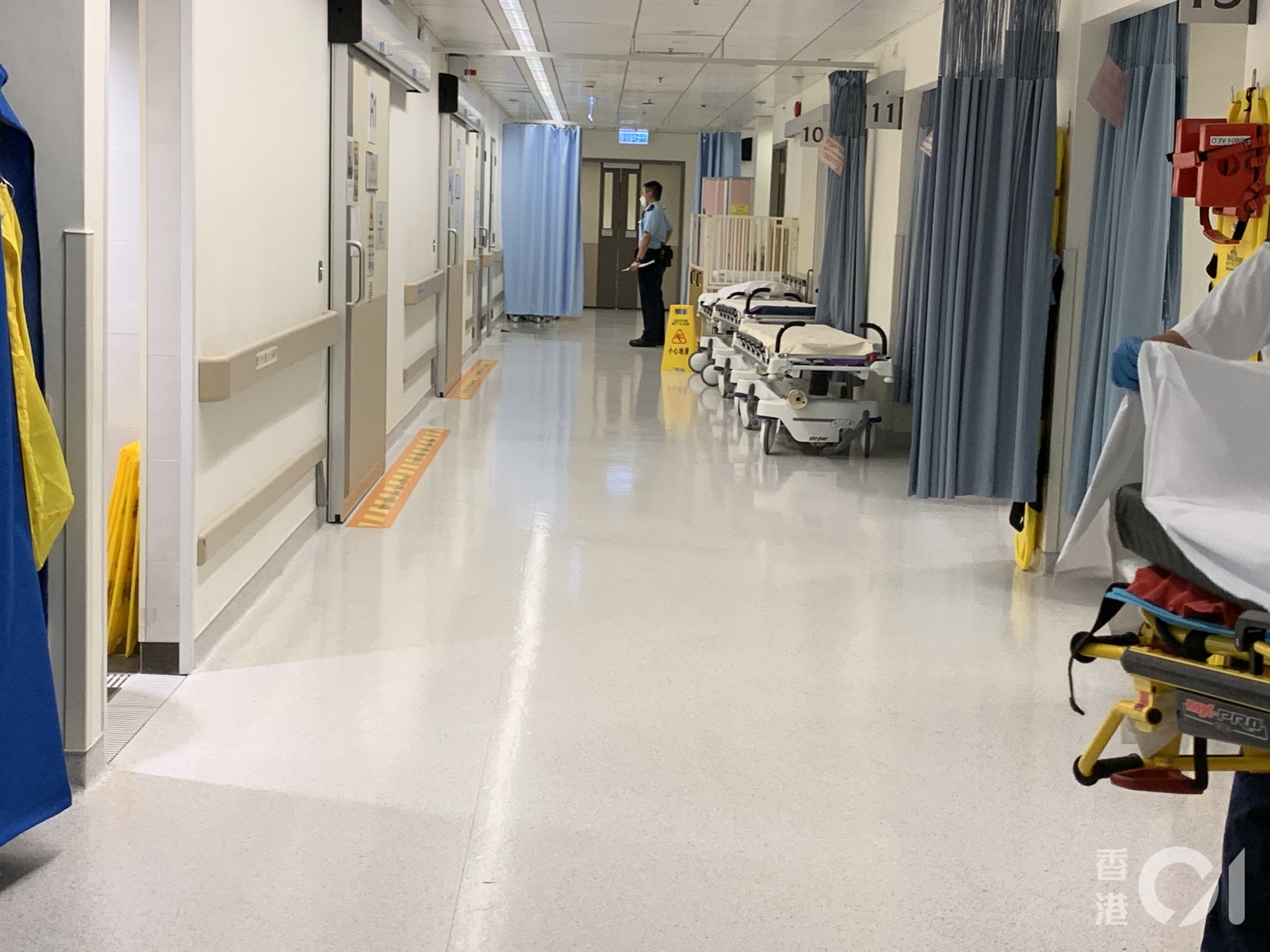 男童墮下地面位置由屏風遮掩,地上遺下一隻皮鞋。(余睿菁攝)