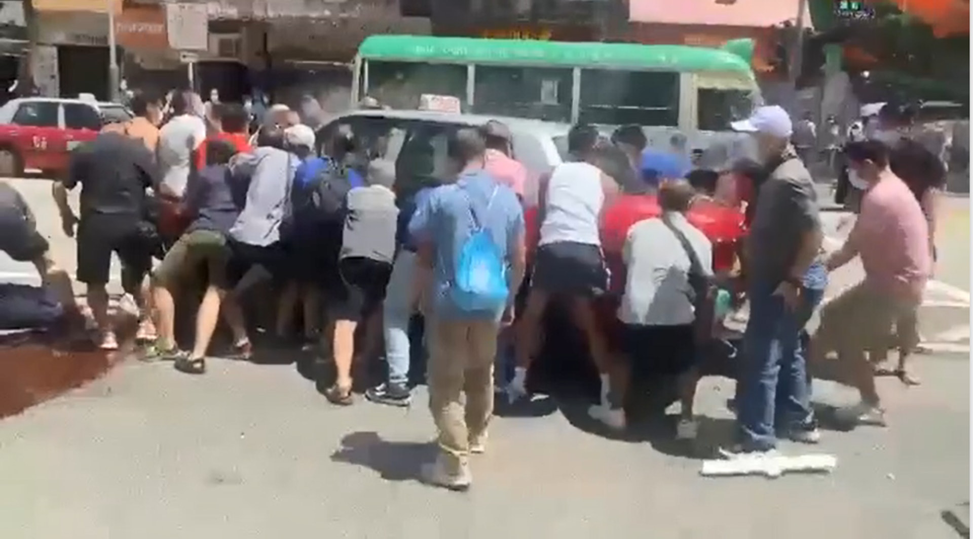 現場情況一度十分緊急,當發現有行人被困車底,包括一名孕婦,數十名市民毫不猶豫上前協助。二十多名壯漢合力齊聲喊出「一、二、三」,成功將冒煙的的士抬起救人,場面震撼人心。馬路兩旁擠滿圍觀市民,不少人神情驚恐,甚至有女子情緒激動,當場落淚,不斷喃喃:「好驚」,目睹慘況者無不動容。